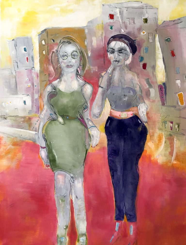 "Walk with my Bestie," pil on canvas, 36" x 48"